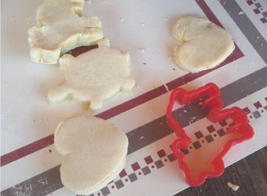 Pour les plus petits, il est préférable de se munir d'emporte-pièces pour sablés ou pâte à modeler, de médaillons et petits moules (jusqu'à 7 ans). L'enfant abaisse la pâte à l'aide d'un mini rouleau, puis applique l'emporte-pièce, le bouge doucement, puis retire la pâte à modeler.